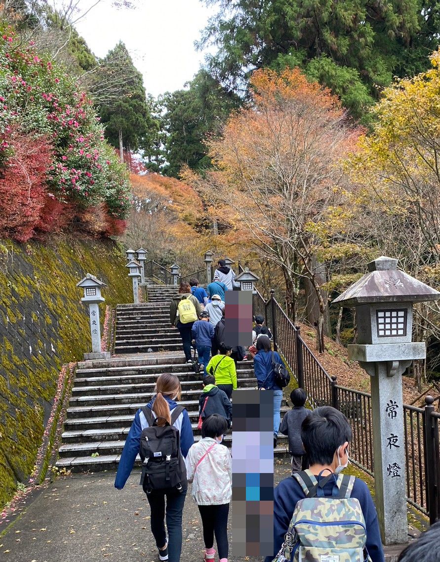 駐車場から本殿に向かうには、何段も続く階段を上ります👟