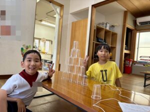 ペアになって積み上げたりしました。みんな慎重に作っていました。
