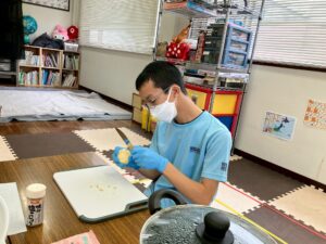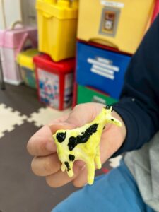 小麦粉粘土に挑戦しました!絵の具が大好きな子どもたちは、感触を楽しみながら色付けをして世界に一つの作品を作りました☺