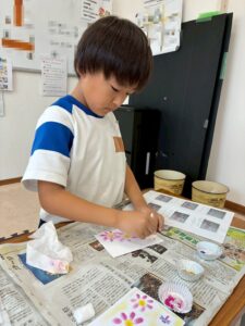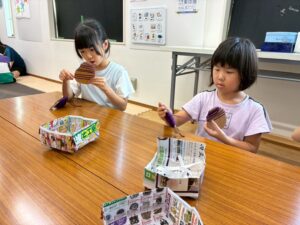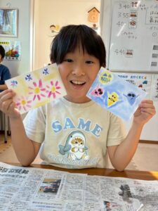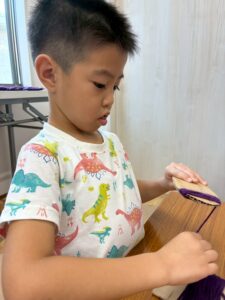 ぶどう作りでは、「シャインマスカットが好き」と緑で作る子や、紫のぶどうを作る子、それぞれの工夫が見受けられました🍇