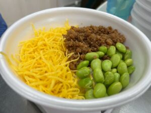 ハピネス祭りで出す「三色丼」の試食会をしました!