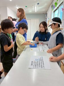 店員さん、お客さんどちらも練習し、「おつりの場合は・・・」ととても真剣!!