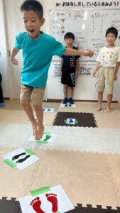 どちらも初めてのもので、足形ジャンプでは、自由時間も友達同士で難易度を上げて楽しむ姿もありました👍