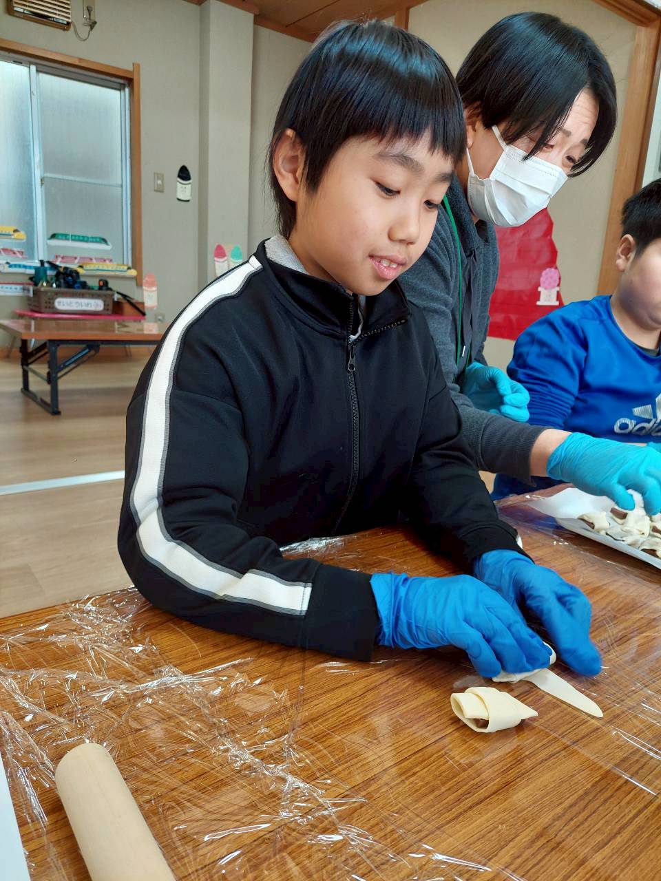 2月14日バレンタイン。男の子が多い浜北教室ですが、今年は作ったお菓子をお家の人にあげよう!どの子も自分で作った物の中から自分で食べる分と、お家へ持って帰る分とで分けました。